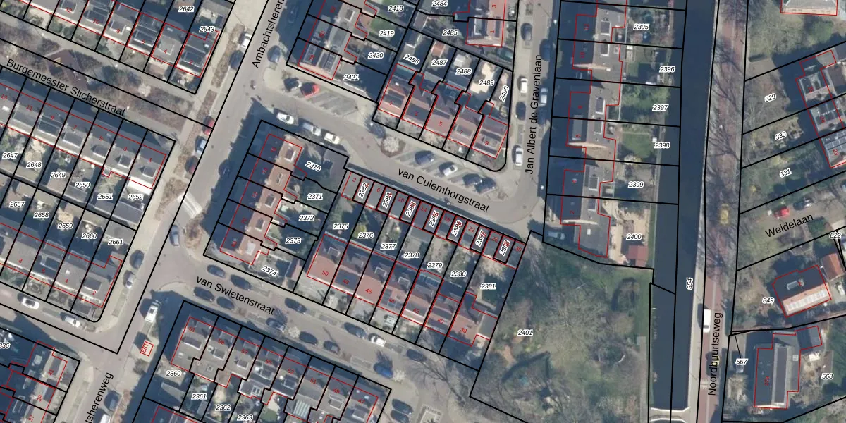 van Culemborgstraat 14 is gelegen op kadastraal perceel ZTW01E2378. Deze kadastrale aanduiding is uniek en wordt gebruikt door het Kadaster om eigendomsrechten en andere zakelijke rechten vast te leggen. Het perceel maakt onderdeel uit van de kadastrale gemeente Zoeterwoude.
