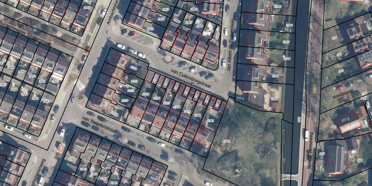 Gebruik de zoekbalk of klik op een perceel voor informatie over de adressen binnen dit perceel.