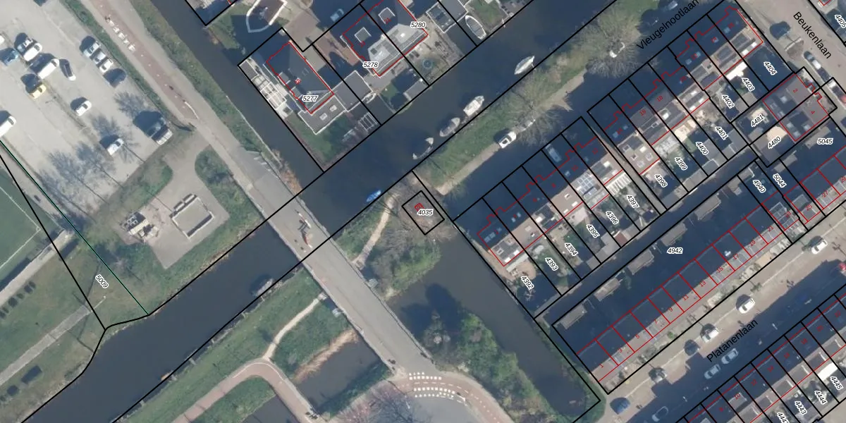 Het perceel waarop het adres ligt is ZTW01-B-4035. De afkorting 'ZTW01' staat voor kadastrale gemeente Zoeterwoude. Het perceel is kleiner dan gemiddeld in Zoeterwoude. Het perceel is 52 m² groot, terwijl het gemiddelde ligt op 4240,64 m². Het grootste perceel in de kadastrale gemeente is 76,0 ha. Het kleinste perceel heeft een oppervlakte van 0 m². Dit is het enige adres dat aanwezig is op het perceel. De huidige grenzen van het perceel zijn digitaal in de Basisregistratie Kadaster (BRK) geregistreerd op 04-08-2008.