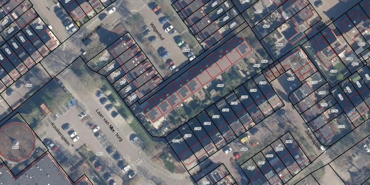 Wilgenhof 20 is gelegen op kadastraal perceel ZTW01B4266. Deze kadastrale aanduiding is uniek en wordt gebruikt door het Kadaster om eigendomsrechten en andere zakelijke rechten vast te leggen. Het perceel maakt onderdeel uit van de kadastrale gemeente Zoeterwoude.