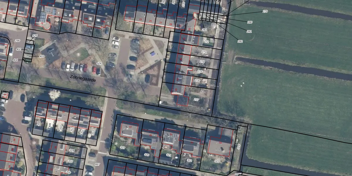 Het perceel waarop Zonnegaarde 45 staat heeft een oppervlakte van 466 m². Dit is een groot perceel. De perceeloppervlakte wordt geregistreerd door het Kadaster. Gedetailleerde informatie over de maten van dit perceel kunt u vinden in het rapport Kadastrale kaart met maatvoering van Zonnegaarde 45.