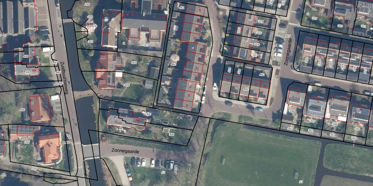 Zonnegaarde 56 is gelegen op kadastraal perceel ZTW01G462. Deze kadastrale aanduiding is uniek en wordt gebruikt door het Kadaster om eigendomsrechten en andere zakelijke rechten vast te leggen. Het perceel maakt onderdeel uit van de kadastrale gemeente Zoeterwoude.