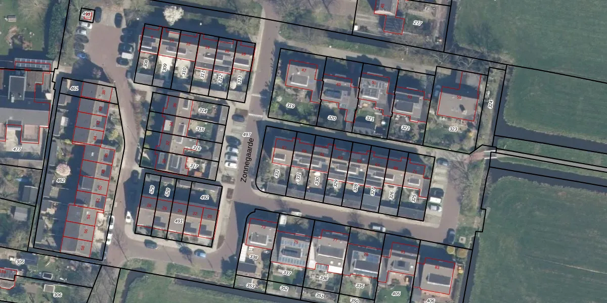 Gebruik de zoekbalk of klik op een perceel voor informatie over de adressen binnen dit perceel.