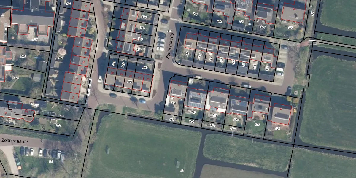 Gebruik de zoekbalk of klik op een perceel voor informatie over de adressen binnen dit perceel.
