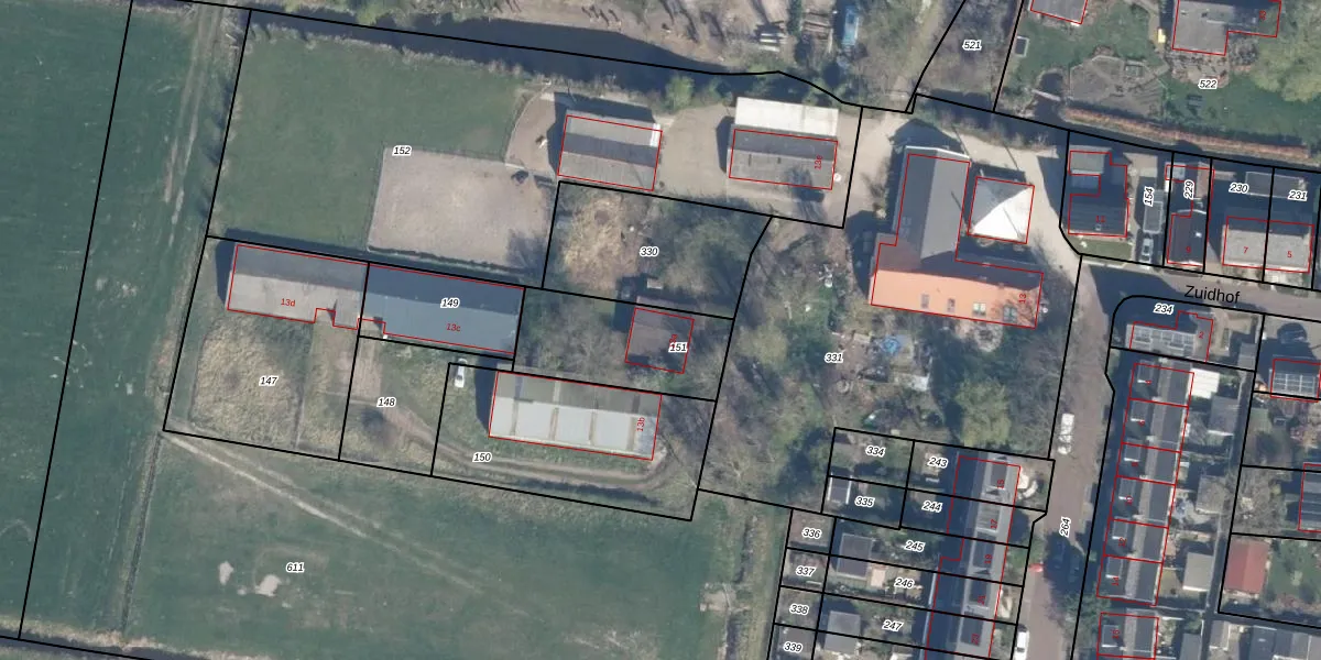 Zuidhof 13-A is gelegen op kadastraal perceel ZTW01F151. Deze kadastrale aanduiding is uniek en wordt gebruikt door het Kadaster om eigendomsrechten en andere zakelijke rechten vast te leggen. Het perceel maakt onderdeel uit van de kadastrale gemeente Zoeterwoude.