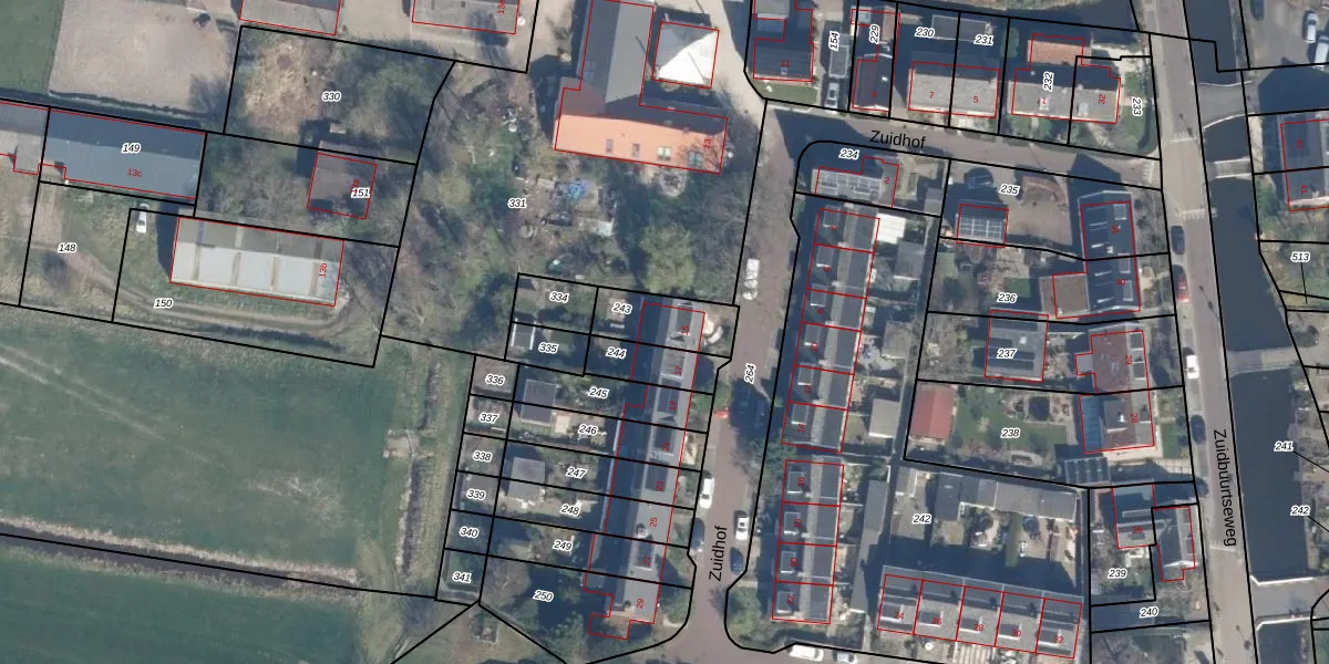 Het perceel waarop Zuidhof 15 staat heeft een oppervlakte van 164 m². Dit is een middelgroot perceel. De perceeloppervlakte wordt geregistreerd door het Kadaster. Gedetailleerde informatie over de maten van dit perceel kunt u vinden in het rapport Kadastrale kaart met maatvoering van Zuidhof 15.