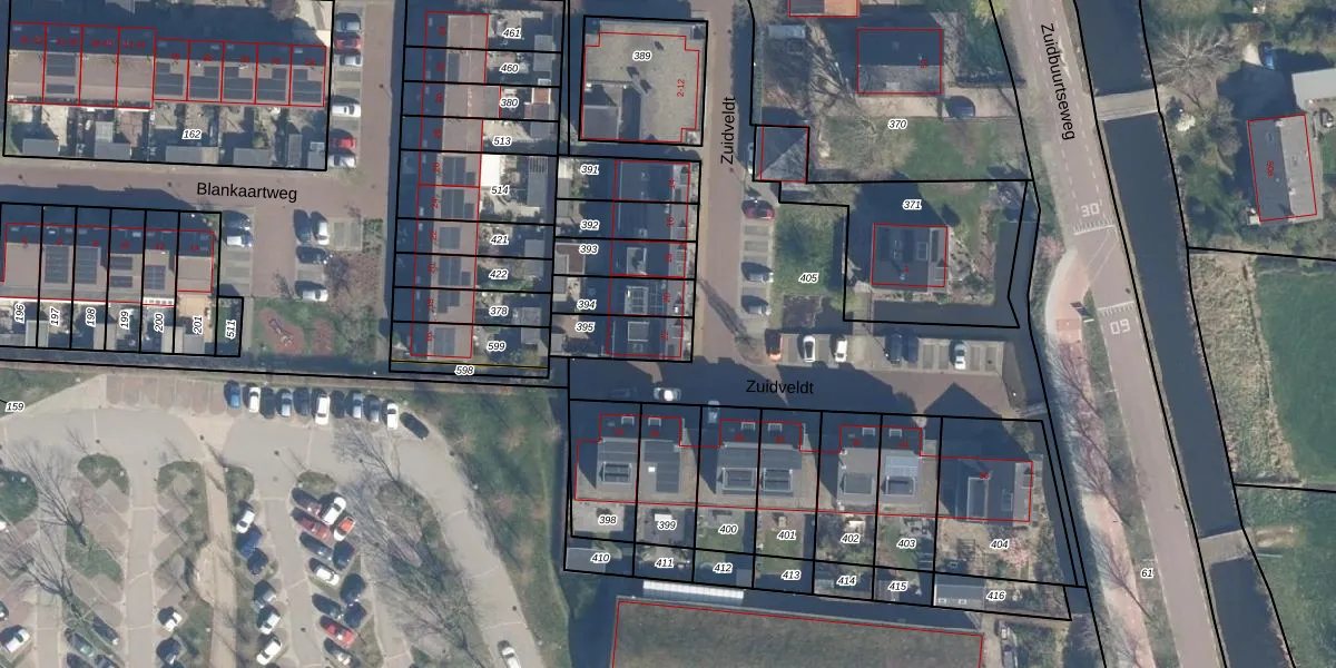 Gebruik de zoekbalk of klik op een perceel voor informatie over de adressen binnen dit perceel.