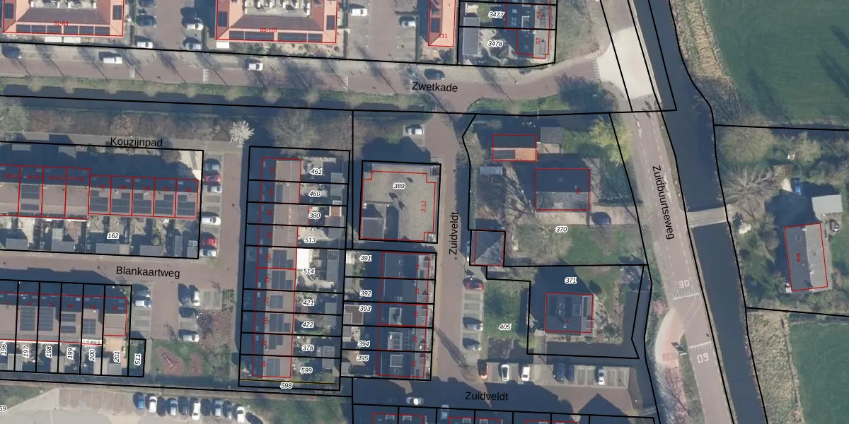 Zuidveldt 6 is gelegen op kadastraal perceel ZTW01F389. Deze kadastrale aanduiding is uniek en wordt gebruikt door het Kadaster om eigendomsrechten en andere zakelijke rechten vast te leggen. Het perceel maakt onderdeel uit van de kadastrale gemeente Zoeterwoude.