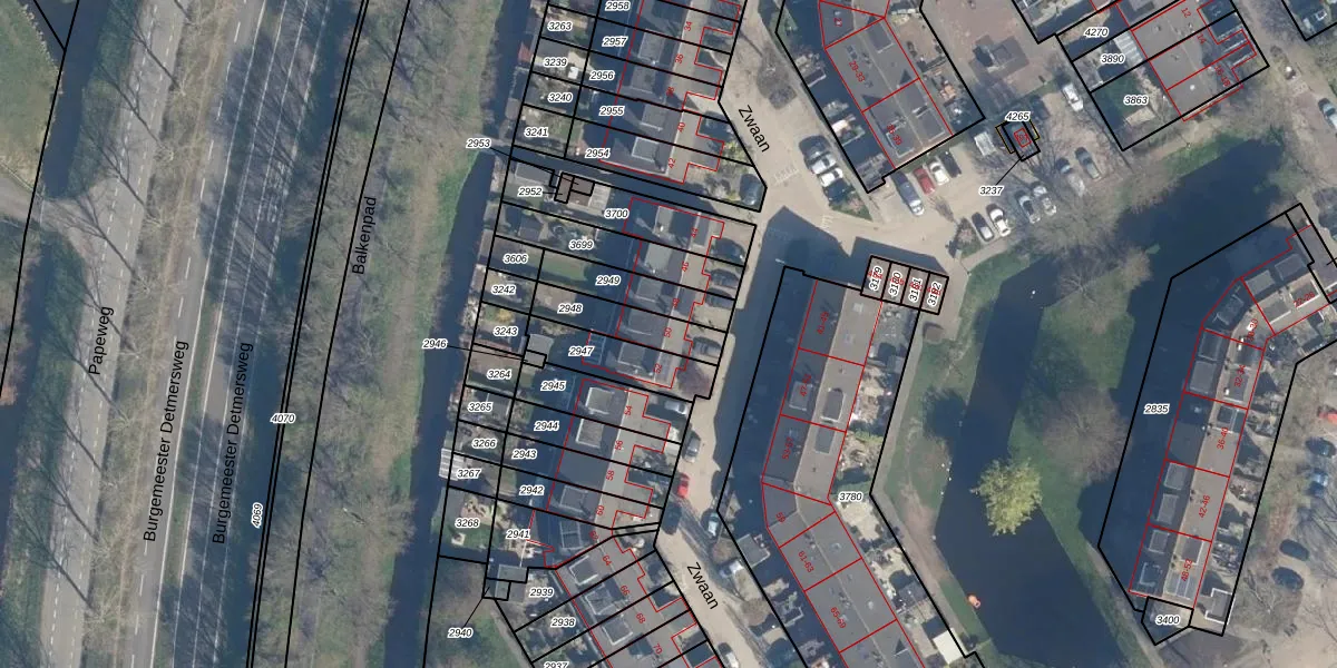 Gebruik de zoekbalk of klik op een perceel voor informatie over de adressen binnen dit perceel.