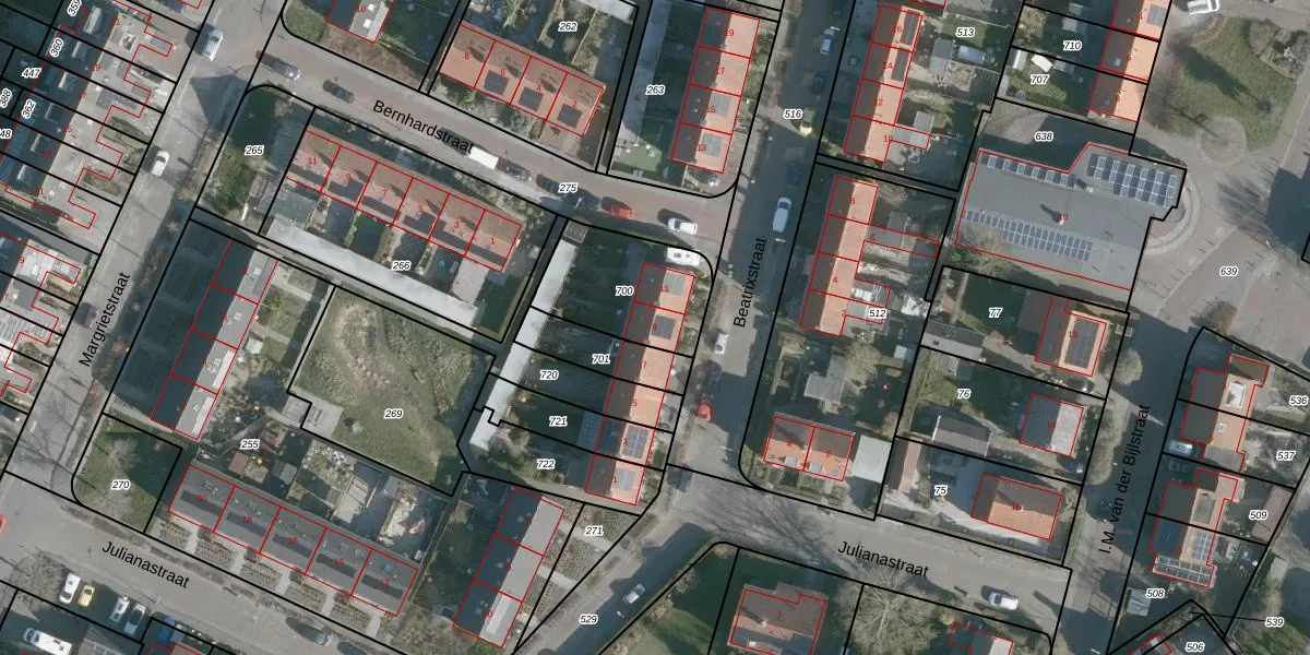 Het perceel waarop Beatrixstraat 9 staat heeft een oppervlakte van 380 m². Dit is een groot perceel. De perceeloppervlakte wordt geregistreerd door het Kadaster. Gedetailleerde informatie over de maten van dit perceel kunt u vinden in het rapport Kadastrale kaart met maatvoering van Beatrixstraat 9.