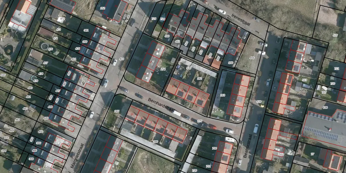 Het perceel waarop Bernhardstraat 8 staat heeft een oppervlakte van 655 m². Dit is een groot perceel. De perceeloppervlakte wordt geregistreerd door het Kadaster. Gedetailleerde informatie over de maten van dit perceel kunt u vinden in het rapport Kadastrale kaart met maatvoering van Bernhardstraat 8.