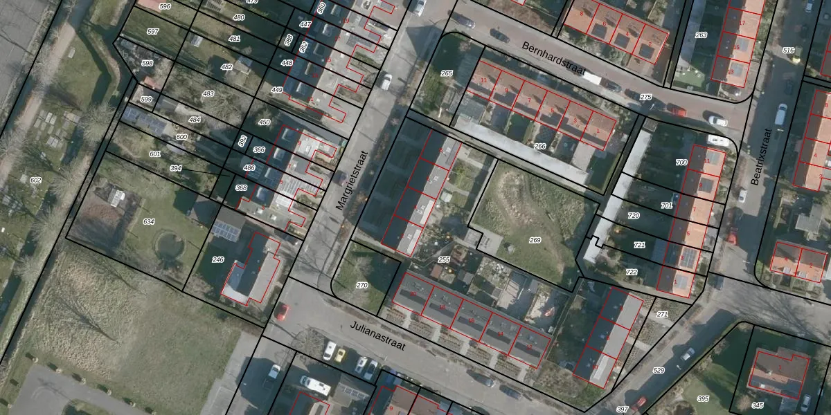 Het perceel waarop Margrietstraat 4 staat heeft een oppervlakte van 2265 m². Dit is een zeer groot perceel. De perceeloppervlakte wordt geregistreerd door het Kadaster. Gedetailleerde informatie over de maten van dit perceel kunt u vinden in het rapport Kadastrale kaart met maatvoering van Margrietstraat 4.