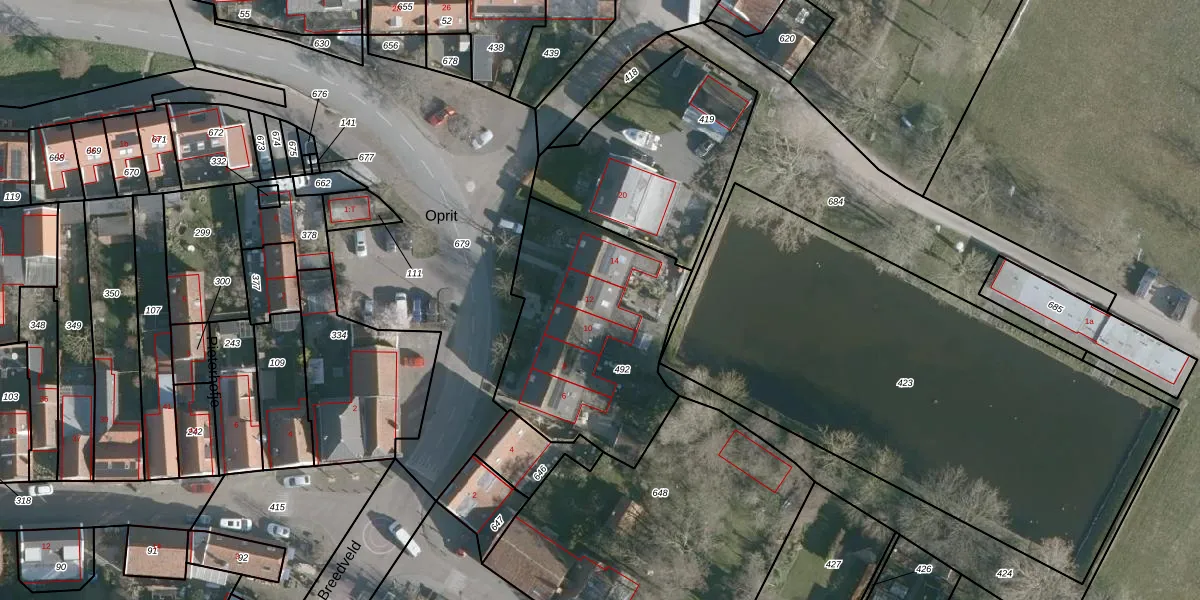 Het perceel waarop Oprit 12 staat heeft een oppervlakte van 956 m². Dit is een groot perceel. De perceeloppervlakte wordt geregistreerd door het Kadaster. Gedetailleerde informatie over de maten van dit perceel kunt u vinden in het rapport Kadastrale kaart met maatvoering van Oprit 12.