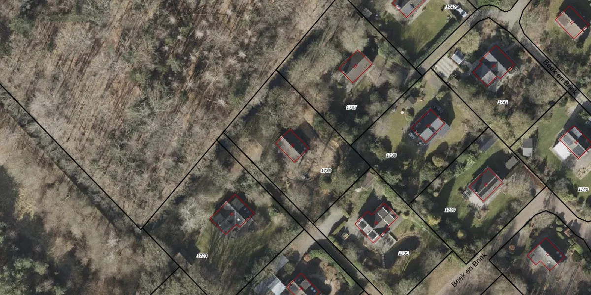 Het perceel waarop Beek en Brink 40 staat heeft een oppervlakte van 1234 m². Dit is een zeer groot perceel. De perceeloppervlakte wordt geregistreerd door het Kadaster. Gedetailleerde informatie over de maten van dit perceel kunt u vinden in het rapport Kadastrale kaart met maatvoering van Beek en Brink 40.