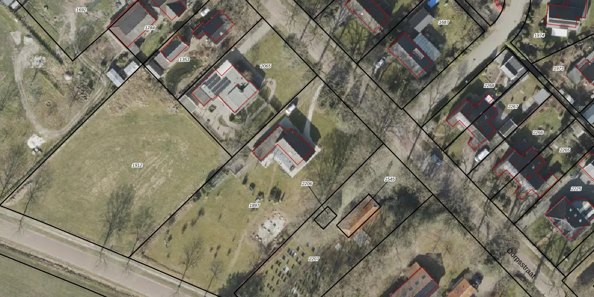 Het perceel waarop Dorpsstraat 7 staat heeft een oppervlakte van 2535 m². Dit is een zeer groot perceel. De perceeloppervlakte wordt geregistreerd door het Kadaster. Gedetailleerde informatie over de maten van dit perceel kunt u vinden in het rapport Kadastrale kaart met maatvoering van Dorpsstraat 7.