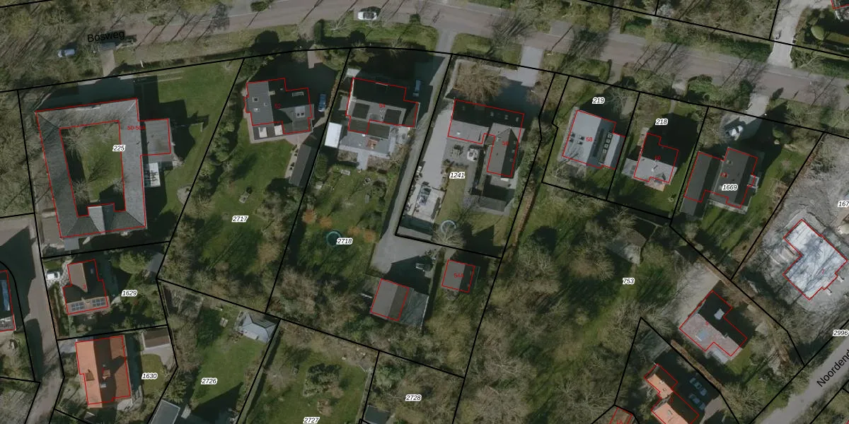 Het perceel waarop Bosweg 56-A staat heeft een oppervlakte van 1160 m². Dit is een zeer groot perceel. De perceeloppervlakte wordt geregistreerd door het Kadaster. Gedetailleerde informatie over de maten van dit perceel kunt u vinden in het rapport Kadastrale kaart met maatvoering van Bosweg 56-A.