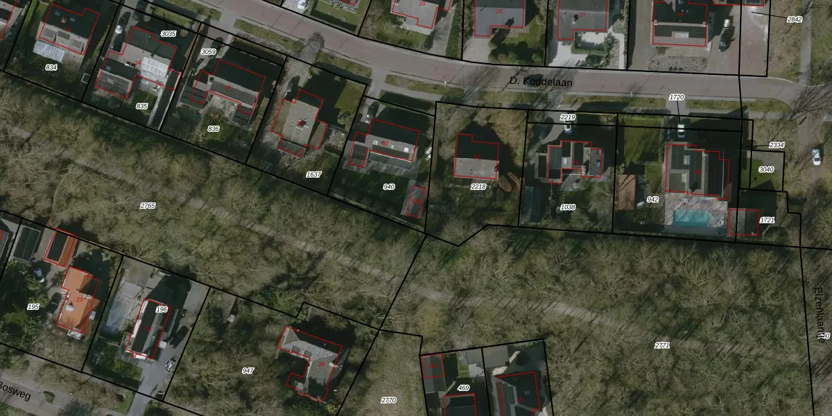 Het perceel waarop D. Koddelaan 30-A staat heeft een oppervlakte van 578 m². Dit is een groot perceel. De perceeloppervlakte wordt geregistreerd door het Kadaster. Gedetailleerde informatie over de maten van dit perceel kunt u vinden in het rapport Kadastrale kaart met maatvoering van D. Koddelaan 30-A.