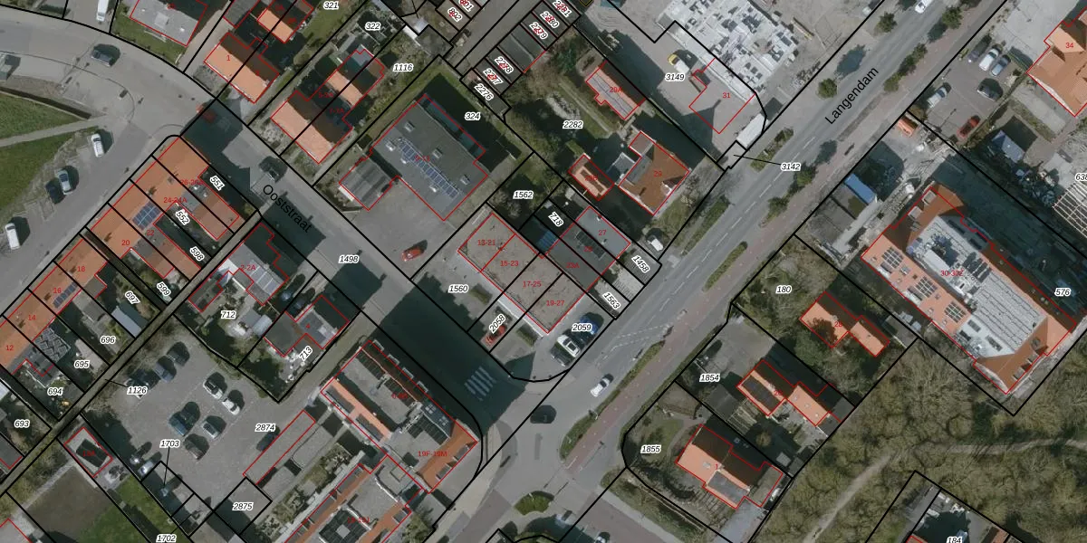 Het perceel waarop Ooststraat 25 staat heeft een oppervlakte van 115 m². Dit is een middelgroot perceel. De perceeloppervlakte wordt geregistreerd door het Kadaster. Gedetailleerde informatie over de maten van dit perceel kunt u vinden in het rapport Kadastrale kaart met maatvoering van Ooststraat 25.