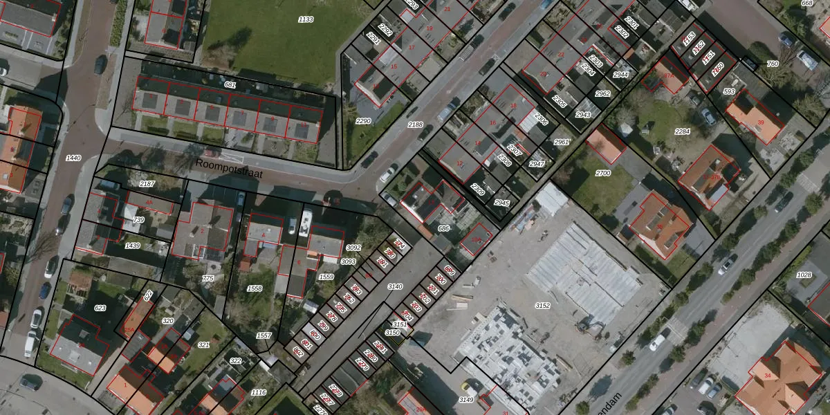 Het perceel waarop Roompotstraat 10 staat heeft een oppervlakte van 378 m². Dit is een groot perceel. De perceeloppervlakte wordt geregistreerd door het Kadaster. Gedetailleerde informatie over de maten van dit perceel kunt u vinden in het rapport Kadastrale kaart met maatvoering van Roompotstraat 10.