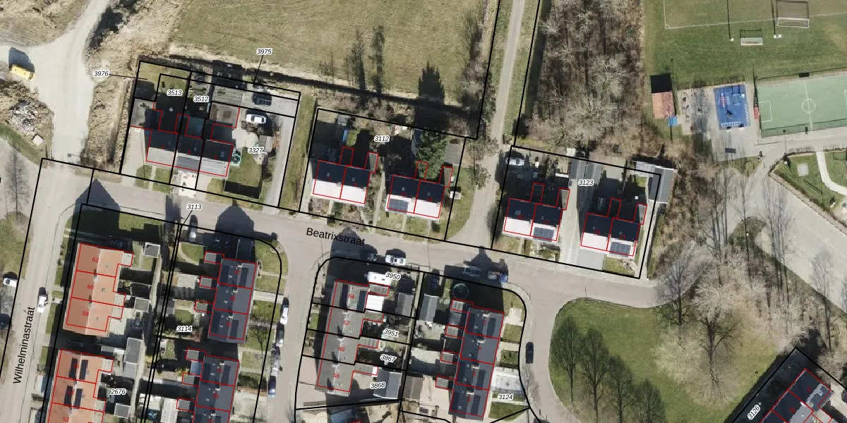 Het perceel waarop Beatrixstraat 13 staat heeft een oppervlakte van 879 m². Dit is een groot perceel. De perceeloppervlakte wordt geregistreerd door het Kadaster. Gedetailleerde informatie over de maten van dit perceel kunt u vinden in het rapport Kadastrale kaart met maatvoering van Beatrixstraat 13.