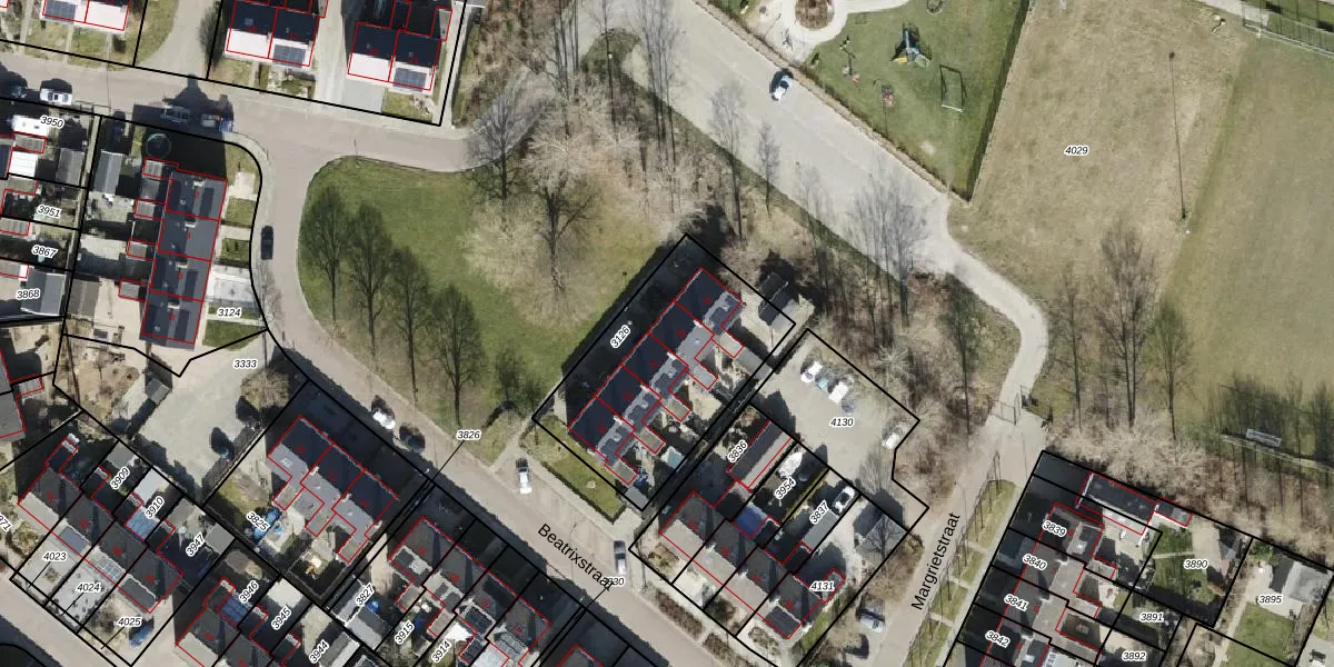 Het perceel waarop Beatrixstraat 29 staat heeft een oppervlakte van 780 m². Dit is een groot perceel. De perceeloppervlakte wordt geregistreerd door het Kadaster. Gedetailleerde informatie over de maten van dit perceel kunt u vinden in het rapport Kadastrale kaart met maatvoering van Beatrixstraat 29.