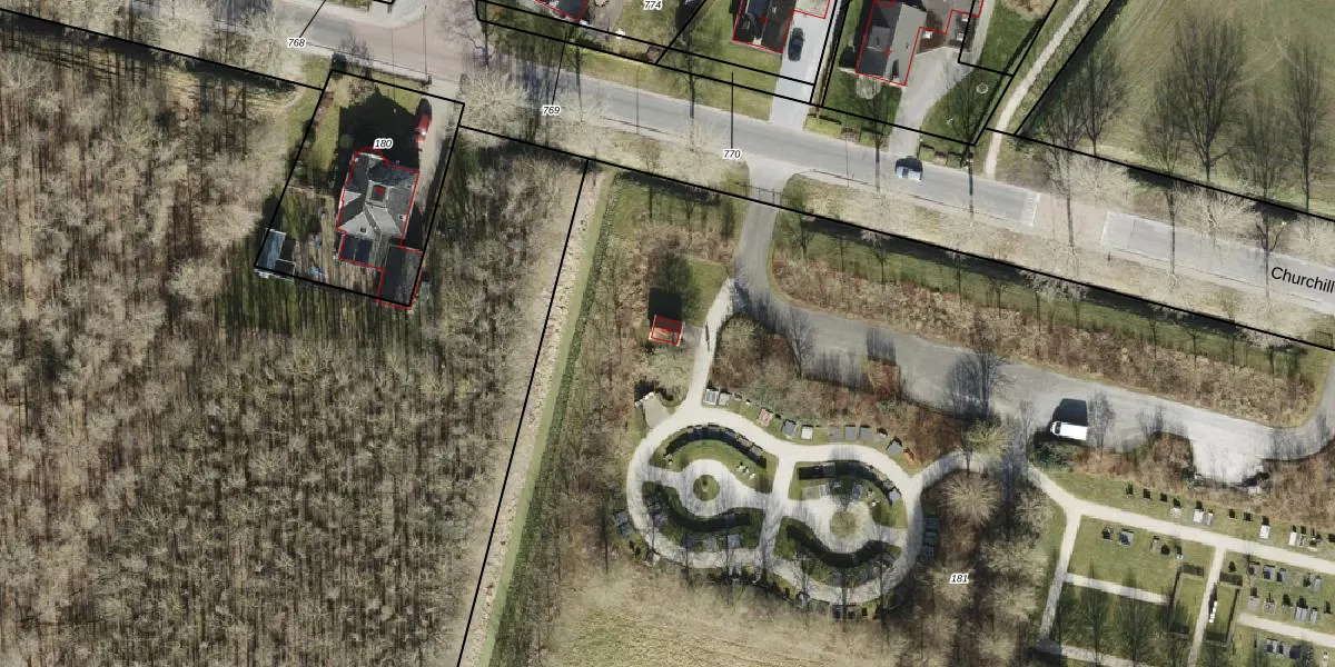 Het perceel waarop Churchillweg 66 staat heeft een oppervlakte van 1,5 ha. Dit is een zeer groot perceel. De perceeloppervlakte wordt geregistreerd door het Kadaster. Gedetailleerde informatie over de maten van dit perceel kunt u vinden in het rapport Kadastrale kaart met maatvoering van Churchillweg 66.