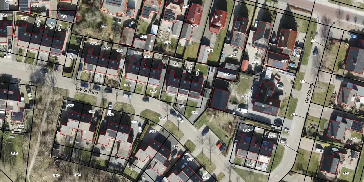 Het perceel waarop De Schans 39 staat heeft een oppervlakte van 148 m². Dit is een middelgroot perceel. De perceeloppervlakte wordt geregistreerd door het Kadaster. Gedetailleerde informatie over de maten van dit perceel kunt u vinden in het rapport Kadastrale kaart met maatvoering van De Schans 39.