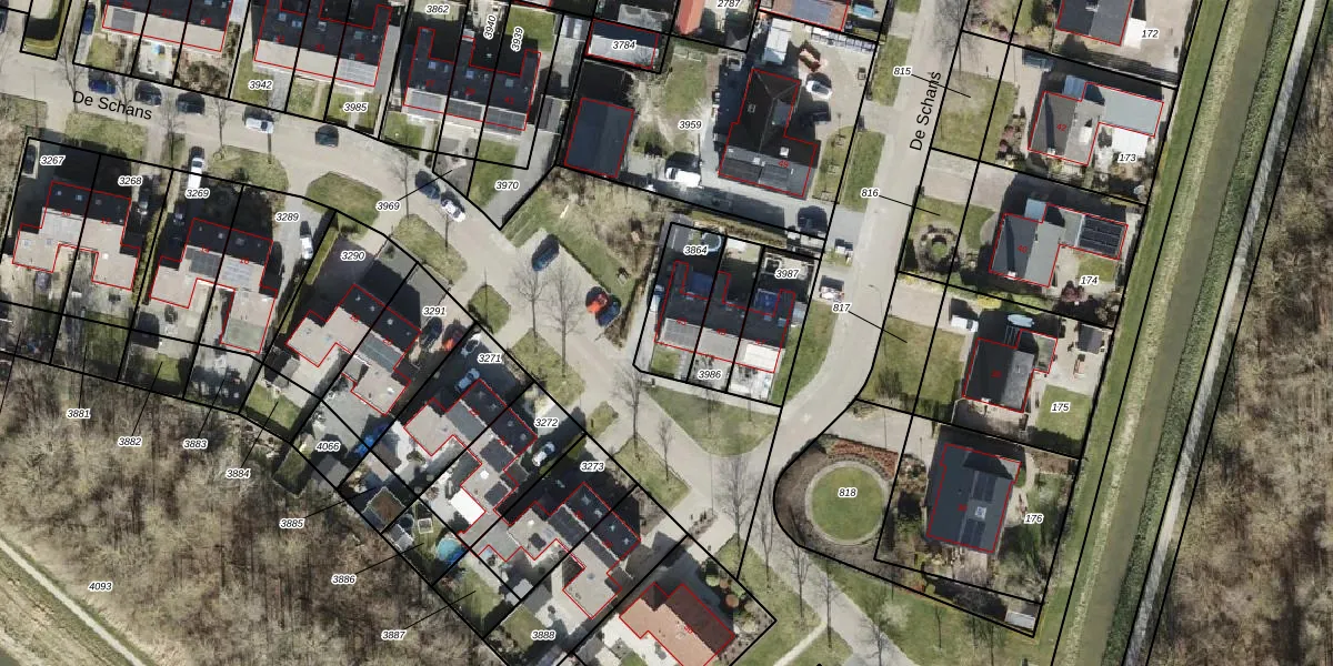 Gebruik de zoekbalk of klik op een perceel voor informatie over de adressen binnen dit perceel.