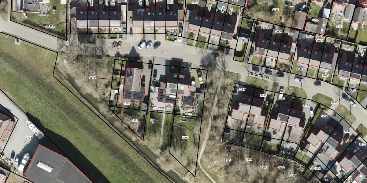 Het perceel waarop De Schans 8 staat heeft een oppervlakte van 389 m². Dit is een groot perceel. De perceeloppervlakte wordt geregistreerd door het Kadaster. Gedetailleerde informatie over de maten van dit perceel kunt u vinden in het rapport Kadastrale kaart met maatvoering van De Schans 8.