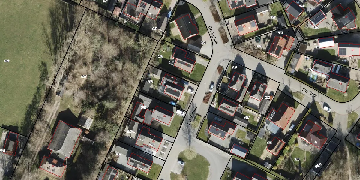 Het perceel waarop De Schuit 28 staat heeft een oppervlakte van 482 m². Dit is een groot perceel. De perceeloppervlakte wordt geregistreerd door het Kadaster. Gedetailleerde informatie over de maten van dit perceel kunt u vinden in het rapport Kadastrale kaart met maatvoering van De Schuit 28.