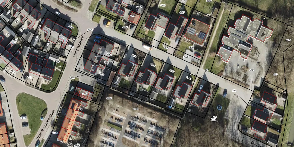 Het perceel waarop De Schuit 4 staat heeft een oppervlakte van 363 m². Dit is een groot perceel. De perceeloppervlakte wordt geregistreerd door het Kadaster. Gedetailleerde informatie over de maten van dit perceel kunt u vinden in het rapport Kadastrale kaart met maatvoering van De Schuit 4.