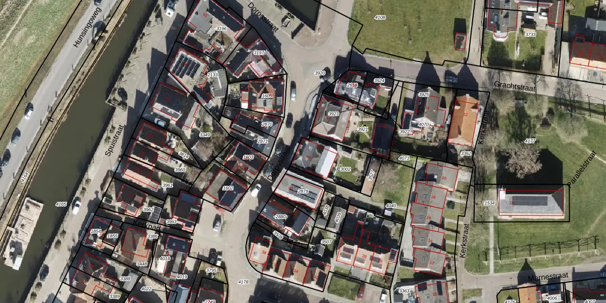 Gebruik de zoekbalk of klik op een perceel voor informatie over de adressen binnen dit perceel.