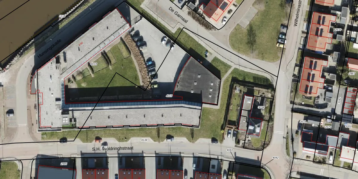 Het perceel waarop Hunsingokade 35 staat heeft een oppervlakte van 2011 m². Dit is een zeer groot perceel. De perceeloppervlakte wordt geregistreerd door het Kadaster. Gedetailleerde informatie over de maten van dit perceel kunt u vinden in het rapport Kadastrale kaart met maatvoering van Hunsingokade 35.