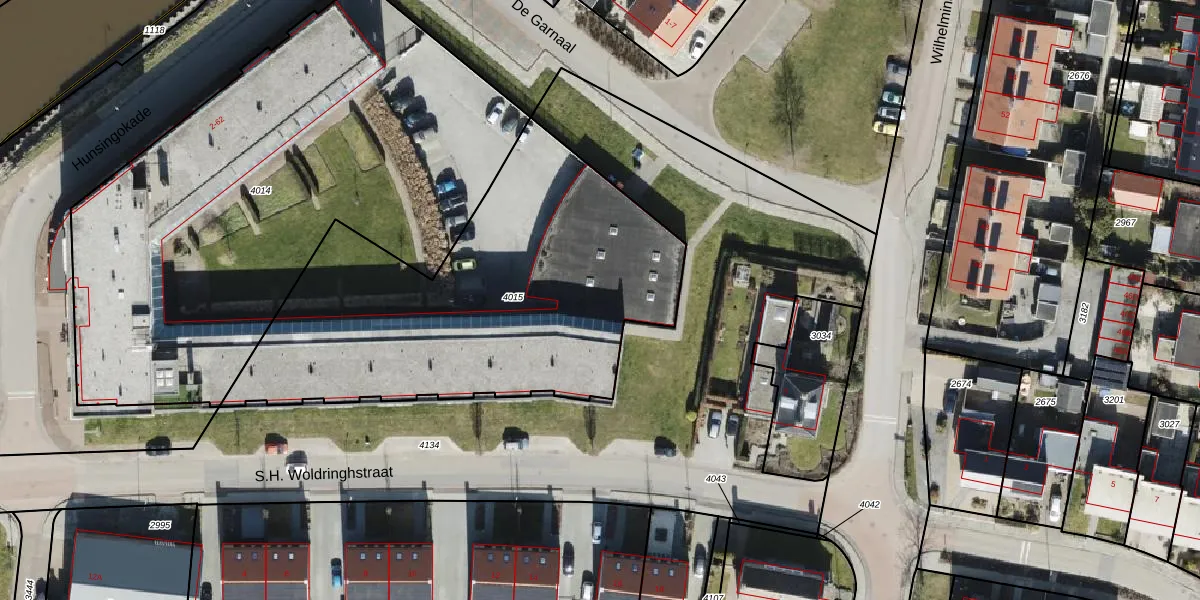 Het perceel waarop Hunsingokade 36 staat heeft een oppervlakte van 2011 m². Dit is een zeer groot perceel. De perceeloppervlakte wordt geregistreerd door het Kadaster. Gedetailleerde informatie over de maten van dit perceel kunt u vinden in het rapport Kadastrale kaart met maatvoering van Hunsingokade 36.