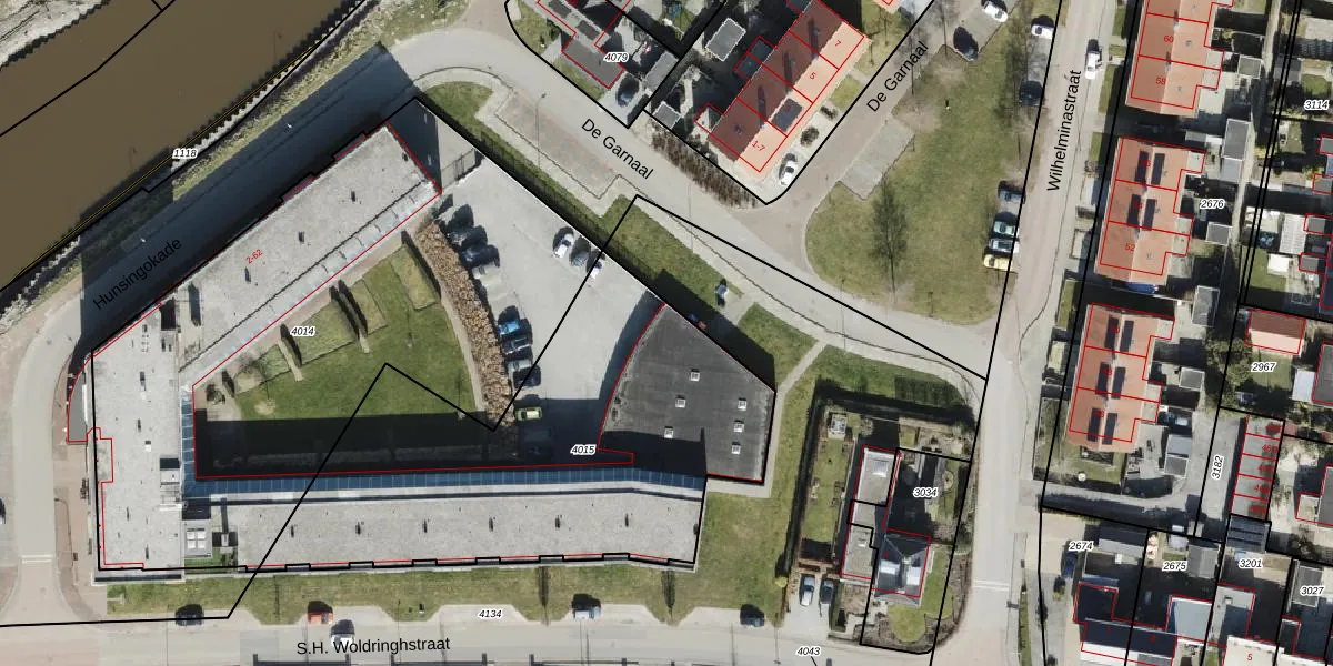 Het perceel waarop Hunsingokade 45 staat heeft een oppervlakte van 2011 m². Dit is een zeer groot perceel. De perceeloppervlakte wordt geregistreerd door het Kadaster. Gedetailleerde informatie over de maten van dit perceel kunt u vinden in het rapport Kadastrale kaart met maatvoering van Hunsingokade 45.