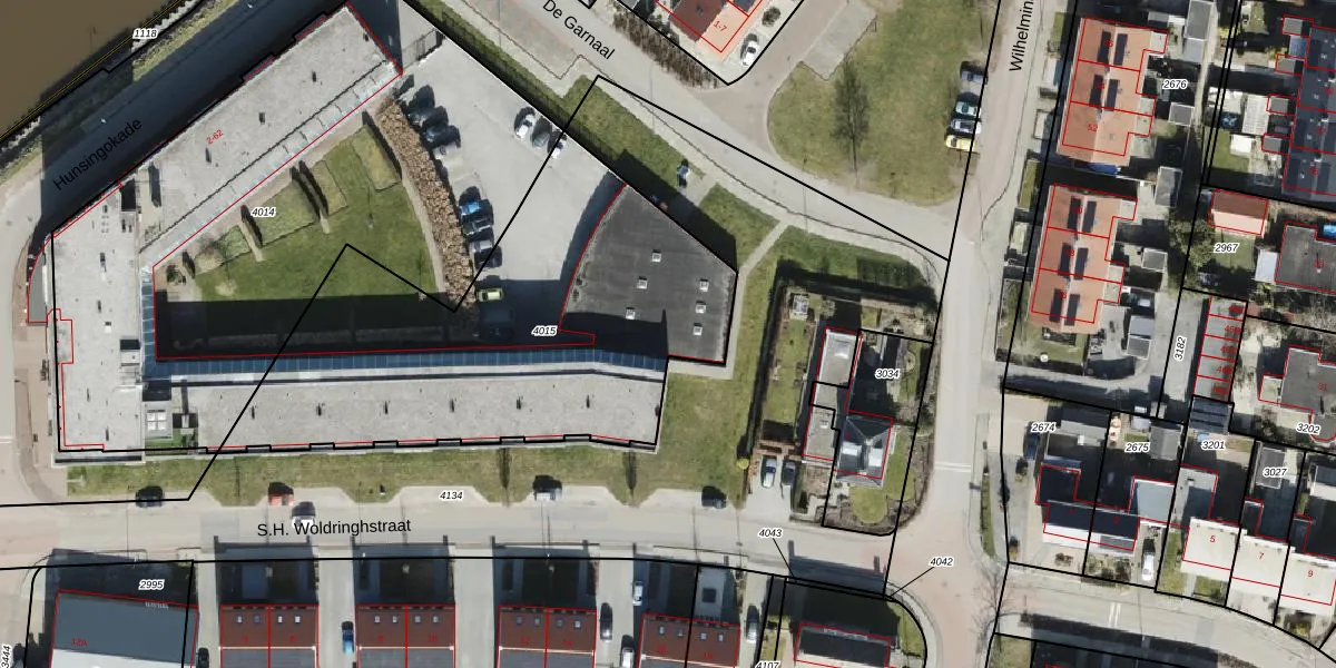 Het perceel waarop Hunsingokade 60 staat heeft een oppervlakte van 2011 m². Dit is een zeer groot perceel. De perceeloppervlakte wordt geregistreerd door het Kadaster. Gedetailleerde informatie over de maten van dit perceel kunt u vinden in het rapport Kadastrale kaart met maatvoering van Hunsingokade 60.