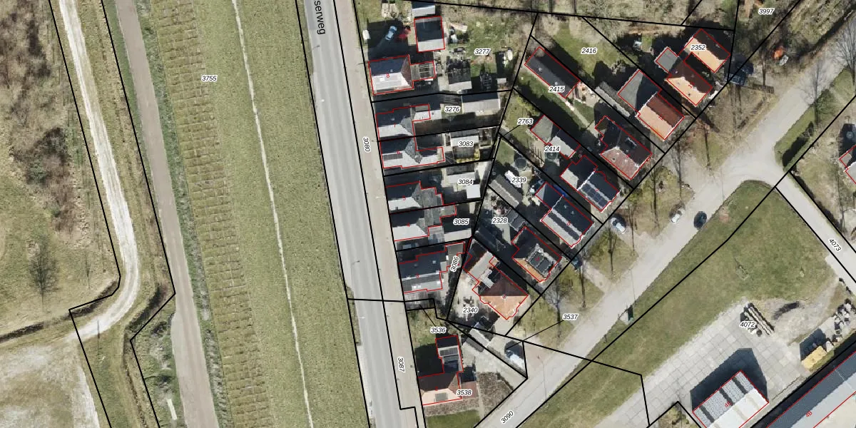 Gebruik de zoekbalk of klik op een perceel voor informatie over de adressen binnen dit perceel.