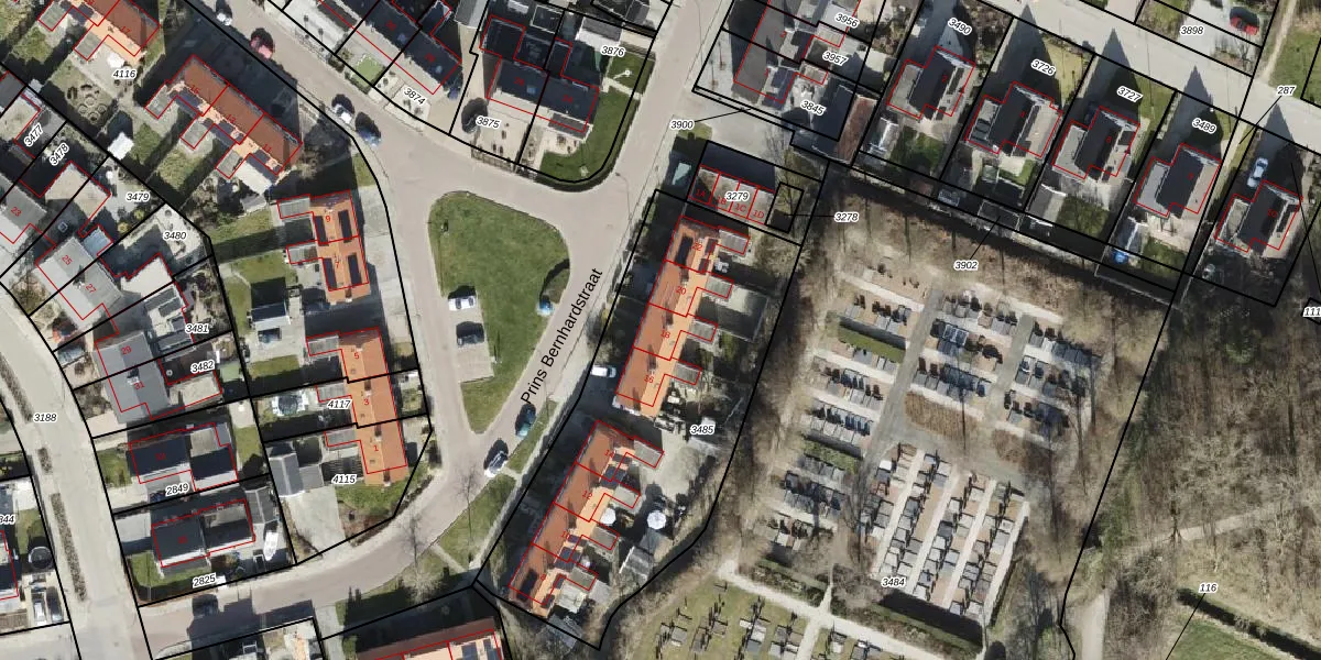Het perceel waarop Prins Bernhardstraat 18 staat heeft een oppervlakte van 1640 m². Dit is een zeer groot perceel. De perceeloppervlakte wordt geregistreerd door het Kadaster. Gedetailleerde informatie over de maten van dit perceel kunt u vinden in het rapport Kadastrale kaart met maatvoering van Prins Bernhardstraat 18.