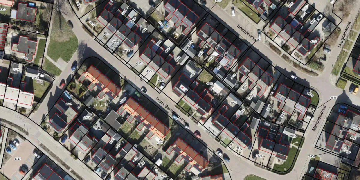 Het perceel waarop Prins Bernhardstraat 38 staat heeft een oppervlakte van 272 m². Dit is een middelgroot perceel. De perceeloppervlakte wordt geregistreerd door het Kadaster. Gedetailleerde informatie over de maten van dit perceel kunt u vinden in het rapport Kadastrale kaart met maatvoering van Prins Bernhardstraat 38.