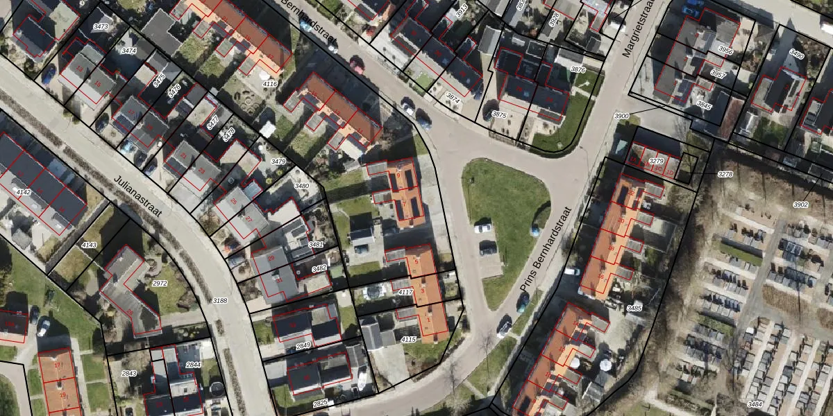 Het perceel waarop Prins Bernhardstraat 7 staat heeft een oppervlakte van 3062 m². Dit is een zeer groot perceel. De perceeloppervlakte wordt geregistreerd door het Kadaster. Gedetailleerde informatie over de maten van dit perceel kunt u vinden in het rapport Kadastrale kaart met maatvoering van Prins Bernhardstraat 7.