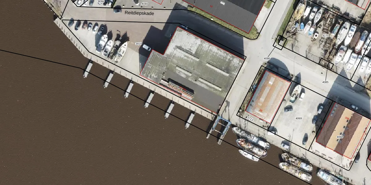 Het perceel waarop Reitdiepskade 19 staat heeft een oppervlakte van 2625 m². Dit is een zeer groot perceel. De perceeloppervlakte wordt geregistreerd door het Kadaster. Gedetailleerde informatie over de maten van dit perceel kunt u vinden in het rapport Kadastrale kaart met maatvoering van Reitdiepskade 19.