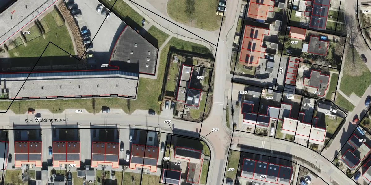 Gebruik de zoekbalk of klik op een perceel voor informatie over de adressen binnen dit perceel.
