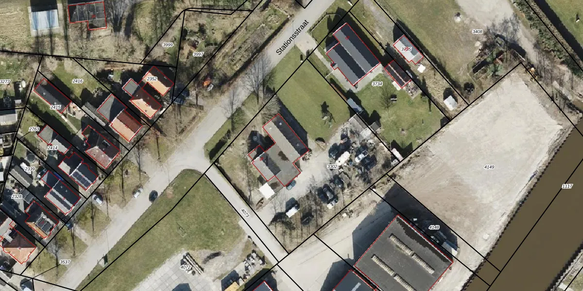 Het perceel waarop Stationsstraat 4-A staat heeft een oppervlakte van 2150 m². Dit is een zeer groot perceel. De perceeloppervlakte wordt geregistreerd door het Kadaster. Gedetailleerde informatie over de maten van dit perceel kunt u vinden in het rapport Kadastrale kaart met maatvoering van Stationsstraat 4-A.