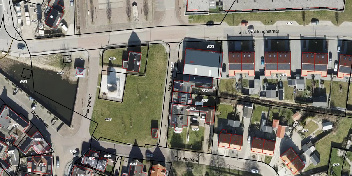 Gebruik de zoekbalk of klik op een perceel voor informatie over de adressen binnen dit perceel.