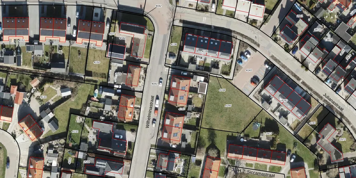 Het perceel waarop Wilhelminastraat 38 staat heeft een oppervlakte van 1057 m². Dit is een zeer groot perceel. De perceeloppervlakte wordt geregistreerd door het Kadaster. Gedetailleerde informatie over de maten van dit perceel kunt u vinden in het rapport Kadastrale kaart met maatvoering van Wilhelminastraat 38.