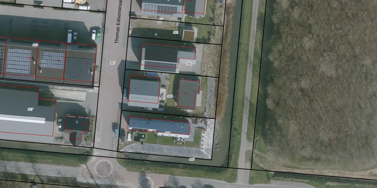 Het perceel waarop Thomas Edisonstraat 4-A staat heeft een oppervlakte van 1100 m². Dit is een zeer groot perceel. De perceeloppervlakte wordt geregistreerd door het Kadaster. Gedetailleerde informatie over de maten van dit perceel kunt u vinden in het rapport Kadastrale kaart met maatvoering van Thomas Edisonstraat 4-A.