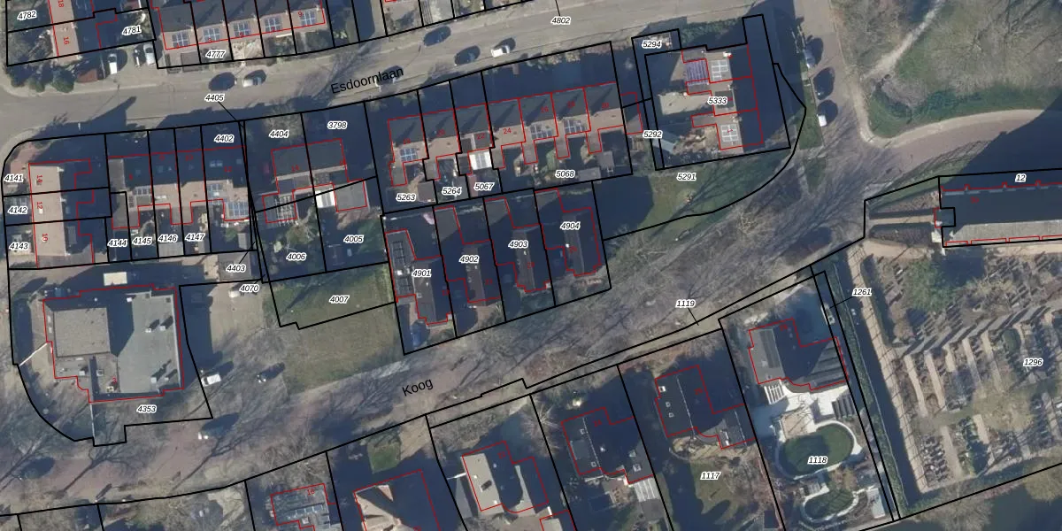 Het perceel waarop Koog 23 staat heeft een oppervlakte van 226 m². Dit is een middelgroot perceel. De perceeloppervlakte wordt geregistreerd door het Kadaster. Gedetailleerde informatie over de maten van dit perceel kunt u vinden in het rapport Kadastrale kaart met maatvoering van Koog 23.