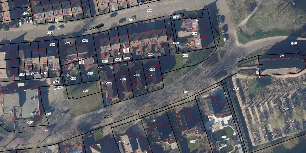 Het perceel waarop Koog 25 staat heeft een oppervlakte van 235 m². Dit is een middelgroot perceel. De perceeloppervlakte wordt geregistreerd door het Kadaster. Gedetailleerde informatie over de maten van dit perceel kunt u vinden in het rapport Kadastrale kaart met maatvoering van Koog 25.