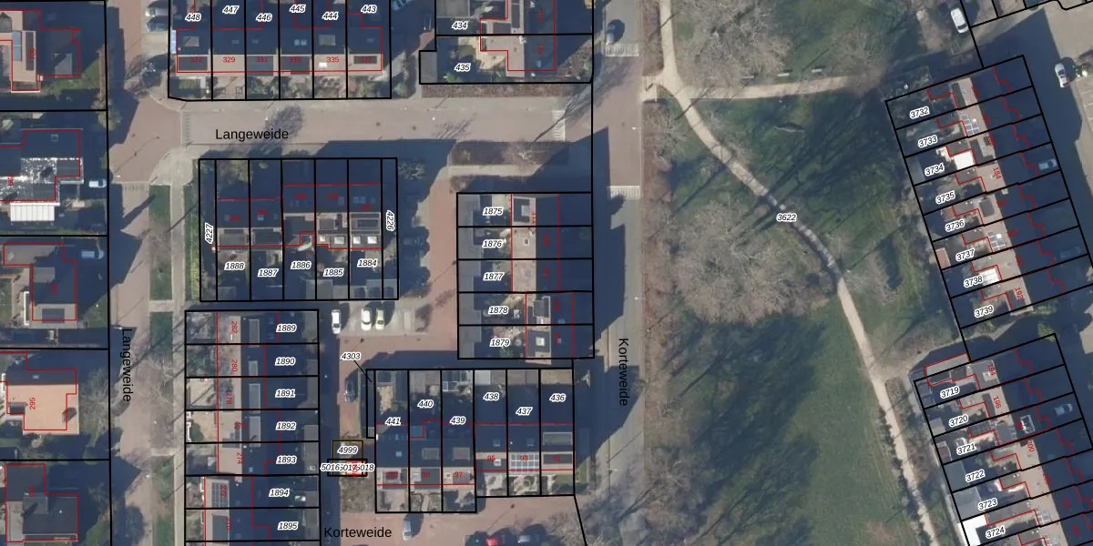 Korteweide 107 is gelegen op kadastraal perceel LGD00B1877. Deze kadastrale aanduiding is uniek en wordt gebruikt door het Kadaster om eigendomsrechten en andere zakelijke rechten vast te leggen. Het perceel maakt onderdeel uit van de kadastrale gemeente Langedijk.