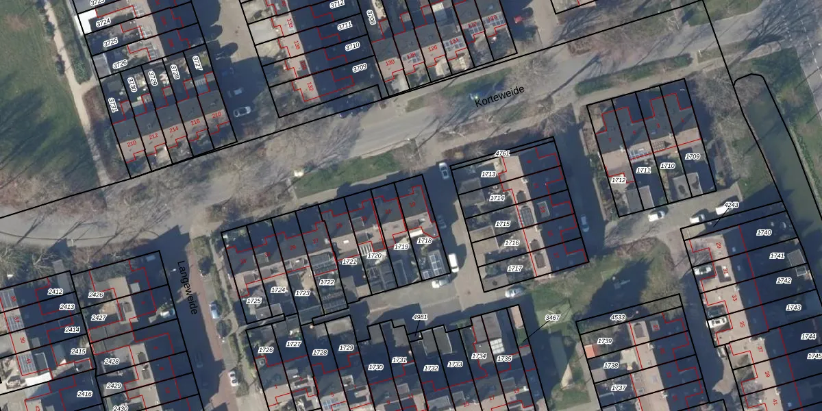 Het perceel waarop Korteweide 19 staat heeft een oppervlakte van 184 m². Dit is een middelgroot perceel. De perceeloppervlakte wordt geregistreerd door het Kadaster. Gedetailleerde informatie over de maten van dit perceel kunt u vinden in het rapport Kadastrale kaart met maatvoering van Korteweide 19.